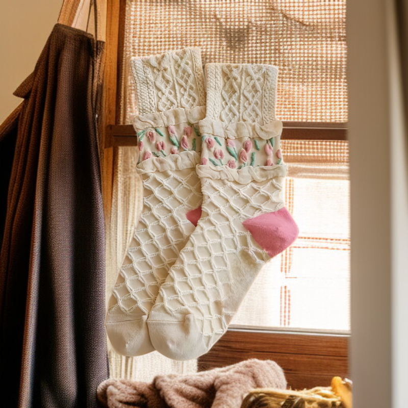 ● Wykonane z wysokiej jakości, oddychającej bawełny, zapewniają komfort noszenia przez cały dzień oraz skuteczną wentylację stóp.