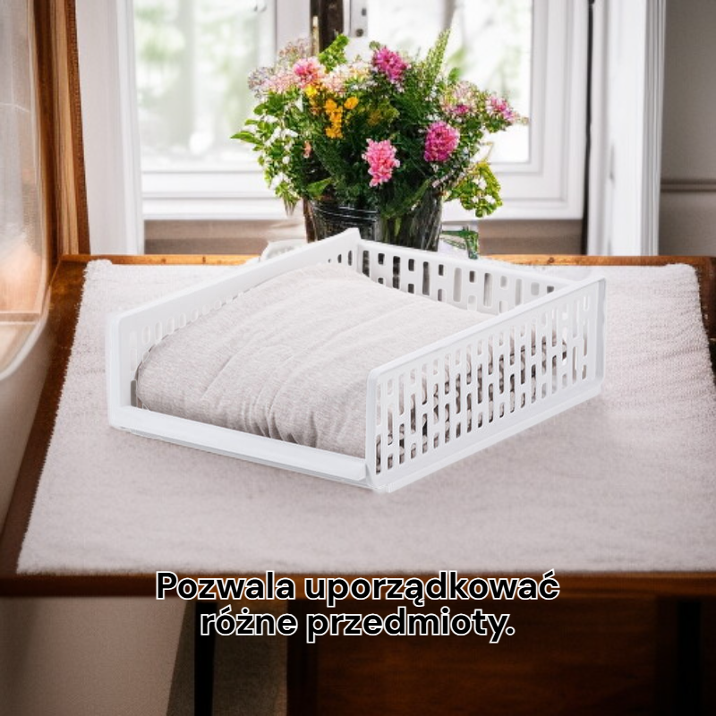 ● Wielopoziomowa półka z przegrodami pozwala na uporządkowane przechowywanie różnych przedmiotów, dzięki czemu oszczędzasz miejsce w domu.